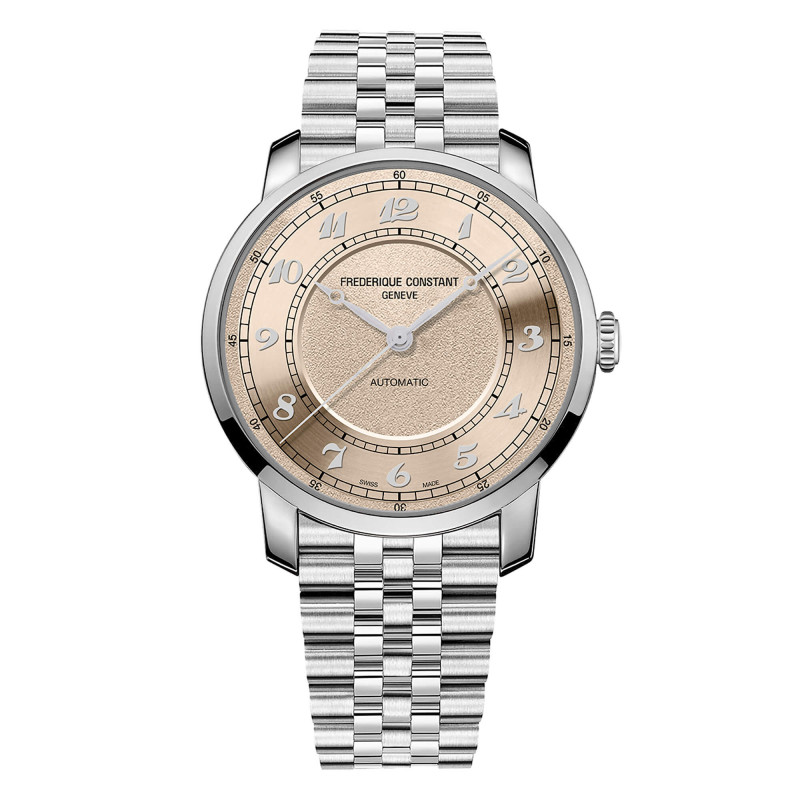 La cassa in acciaio inossidabile da 38,5 mm offre proporzioni ideali per un uso quotidiano raffinato e un comfort ottimale anche per polsi di diverse dimensioni. Al suo interno pulsa il movimento automatico Swiss Made FC-301, con riserva di carica di circa 68 ore e 24 rubini, capace di fornire affidabilità e precisione elevate per ore, minuti e secondi centrali.