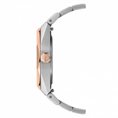 Il bracciale bicolore in acciaio e PVD oro rosa completa l’orologio con una presenza elegante e confortevole al polso, rendendolo adatto sia a un utilizzo quotidiano sia a contesti più formali. L’impermeabilità fino a 100 metri garantisce versatilità e tranquillità nell’uso di tutti i giorni.
