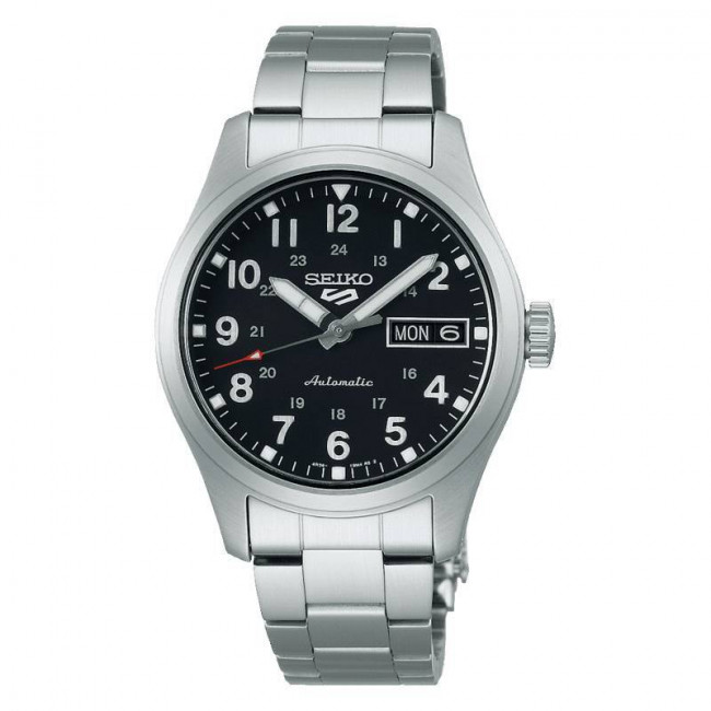 Con questo orologio sportivo e il suo splendido quadrante nero, mostrate con orgoglio il vostro stile. Realizzato interamente in acciaio inossidabile il 5 Sports SRPJ81K1 è dotato di un movimento automatico a 3 lancette e presenta un calendario bilingue Inglese/Giapponese a ore 3 e il nuovo logo della collezione Seiko 5 a ore 12.