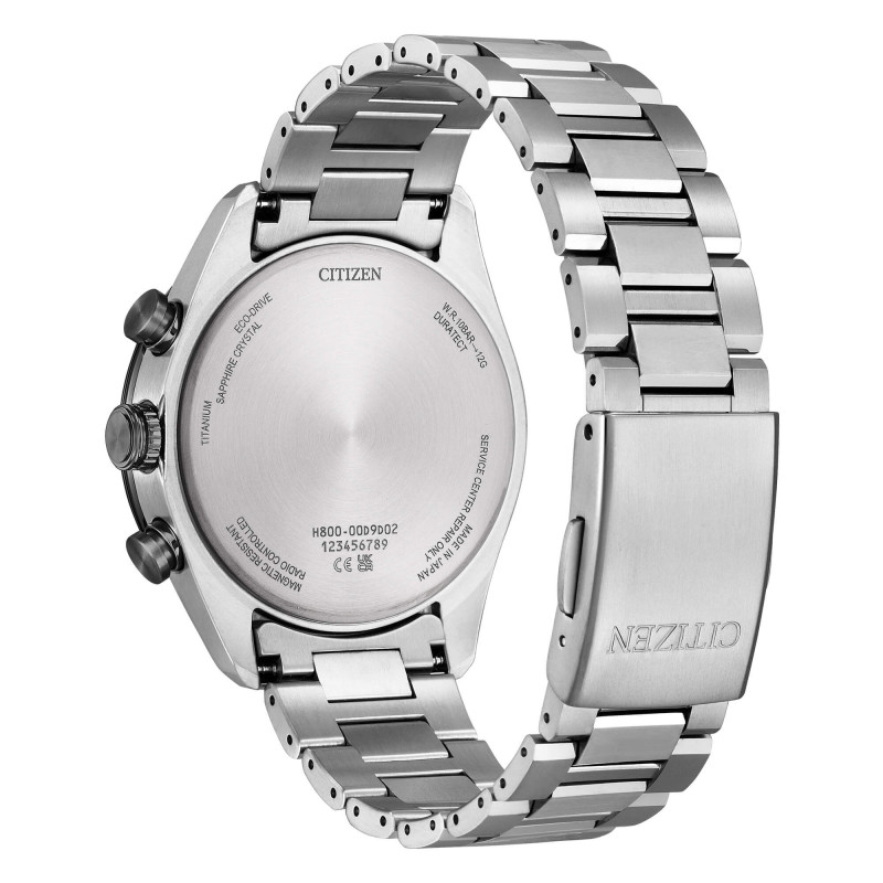 Il quadrante nero con dettagli luminosi ospita funzioni avanzate come Eco-Drive a carica solare, che elimina la necessità di sostituire la batteria, e la ricezione del segnale radiocontrollato, che garantisce un’ora sempre precisa in qualsiasi parte del mondo.