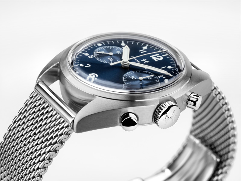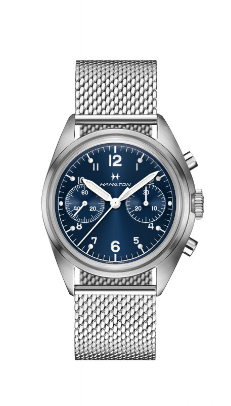 Il Khaki Aviation Pilot Pioneer è un cronografo dal forte carattere militare-aeronautico, dotato di movimento a carica manuale H-51-Si con spirale in silicio e  riserva di carica di 60 ore.
