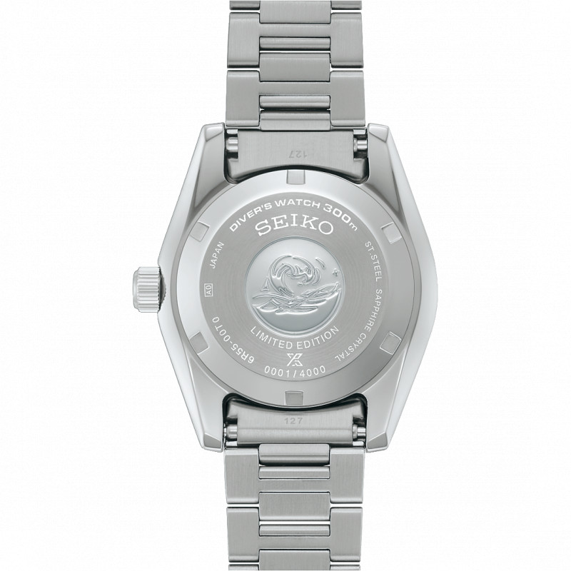 Al suo interno batte il movimento automatico Seiko 6R55, calibro di nuova generazione con 72 ore di riserva di carica, apprezzato per affidabilità, stabilità e durata nel tempo. La resistenza all’acqua di 300 metri, la corona a vite e il fondello a vite certificano l’anima da vero diver conforme agli standard ISO. Il bracciale in acciaio completa il segnatempo offrendo solidità e una vestibilità equilibrata.