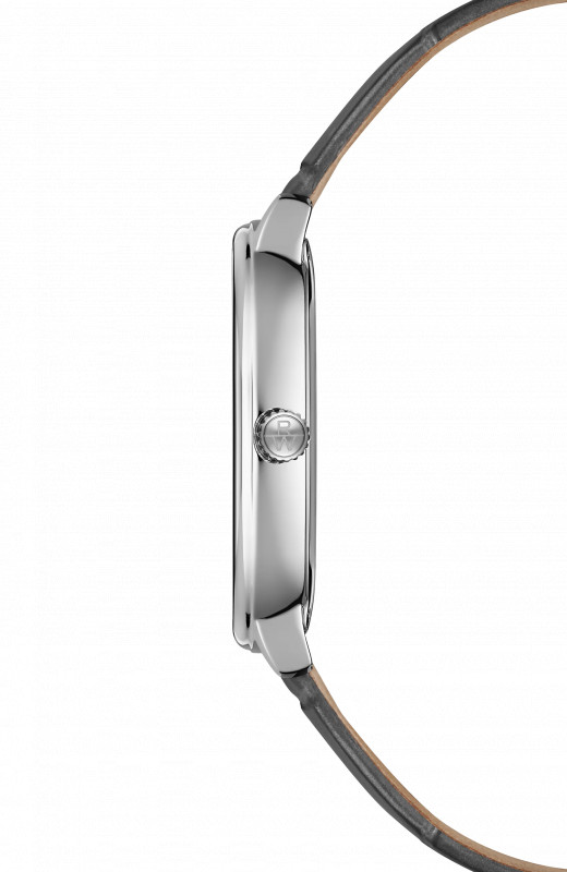 Sotto il vetro zaffiro antiriflesso batte il movimento meccanico a carica manuale RW4100, visibile attraverso il fondello trasparente, con una riserva di carica di circa 45 ore.
