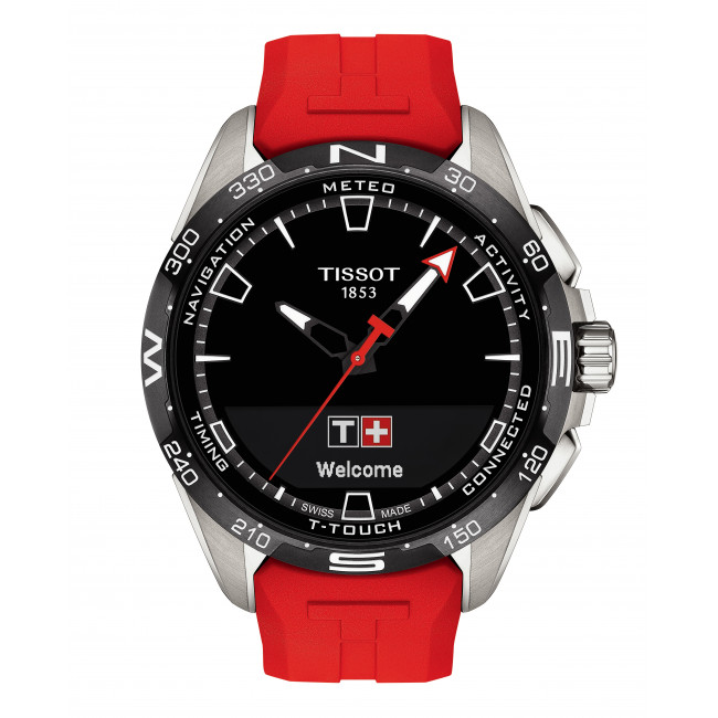 Discende T1214204705101nte del primo orologio tattile multifunzione della storia, il T-Touch Connect Solar incarna la filosofia Tissot: Innovators by Tradition. Il T-Touch Connect Solar ha tutte le funzioni di un T-Touch Solar Expert: calendario perpetuo, conto alla rovescia, temporizzazione, allarmi, meteo e altimetro e aggiunge nuove funzioni come tracker di attività, messaggi o notifiche di chiamata. Le informazioni vengono visualizzate su uno schermo MIP con alta leggibilità all'aperto. L'autonomia del T-Touch Connect Solar è pressoché infinita in modalità disconnessa grazie alle celle fotovoltaiche di ultima generazione, In modalità connessa, può arrivare fino a 6 mesi. Il modello è disponibile in titanio satinato, titanio PVD nero o titanio PVD oro rosa.
