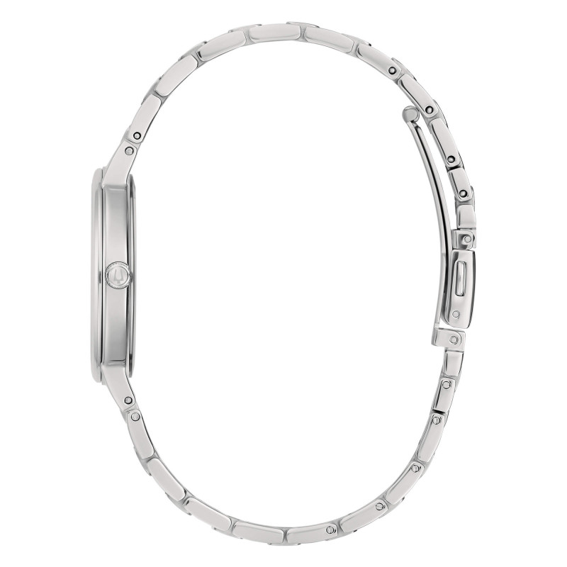 Il Bulova Classic Elegant 96L335 è un orologio da donna che unisce delicatezza e classe in un design senza tempo. La cassa in acciaio da 32 mm presenta linee armoniose e una finitura lucida che valorizza il quadrante rosa cipria, elegante e femminile, con indici e lancette argentate che ne esaltano la luminosità.