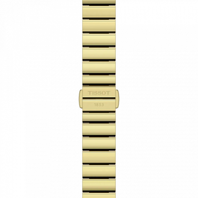 Il modello è completato da un elegante bracciale in acciaio con trattamento PVD oro giallo, con chiusura a farfalla con pulsanti e sistema di sgancio rapido, che garantisce comfort e versatilità in ogni occasione.