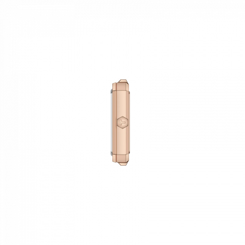 La cassa rettangolare in acciaio con trattamento PVD, dalle dimensioni di 30 mm x 21,8 mm e con uno spessore ultrasottile di 7,25 mm, offre una silhouette slanciata e femminile, perfetta per chi cerca discrezione ed eleganza al polso. Il nome SRV (Sapphire Rectangle V) richiama il suo elemento distintivo: il vetro zaffiro sfaccettato antigraffio, che valorizza la luce e dona profondità al design.
